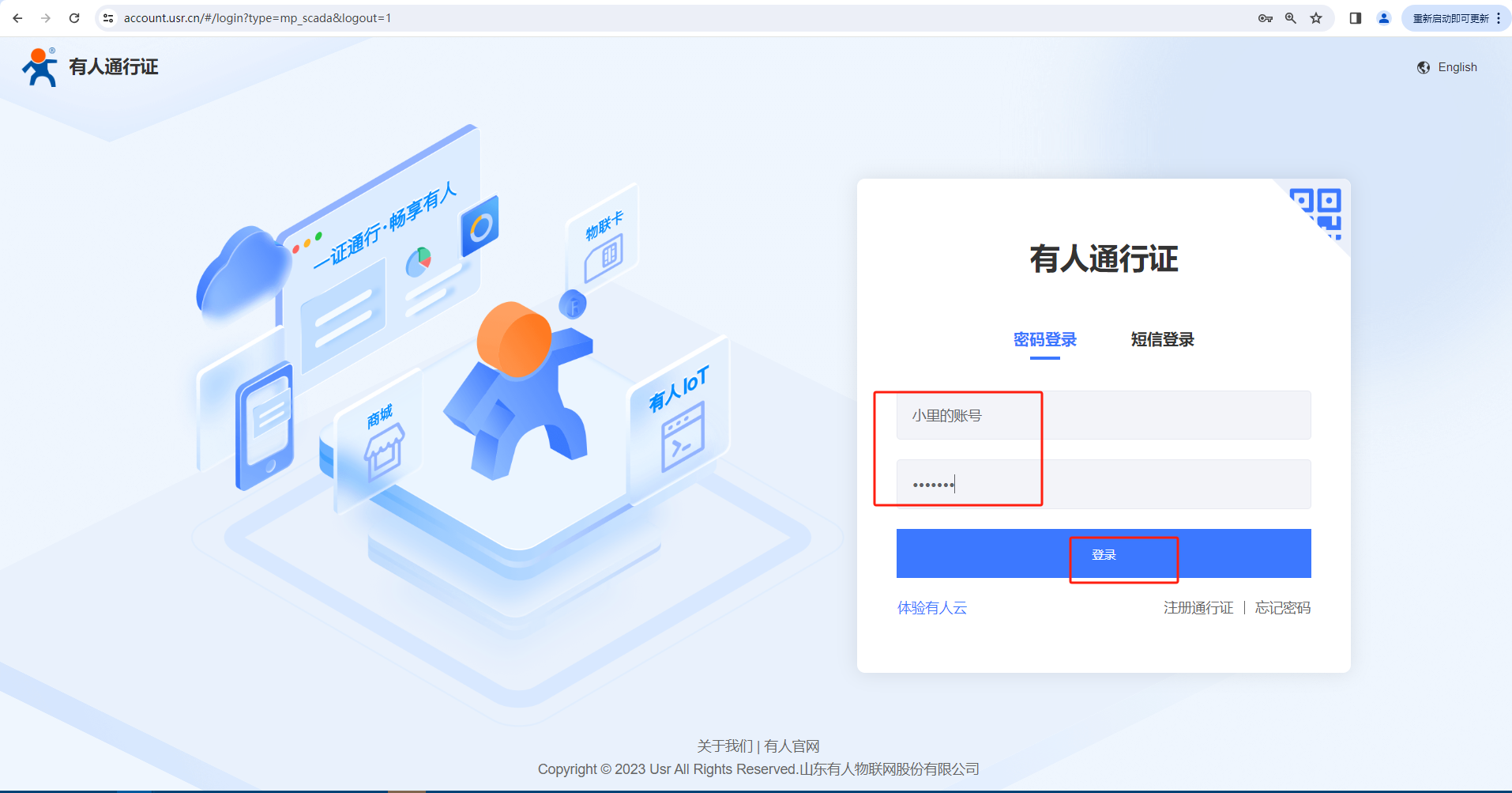 3.用添加子用戶(hù)的手機(jī)號(hào)或者用戶(hù)名+密碼,可以登錄子賬號(hào),后續(xù)添加組織A下的網(wǎng)關(guān),可以在子賬號(hào)里看到