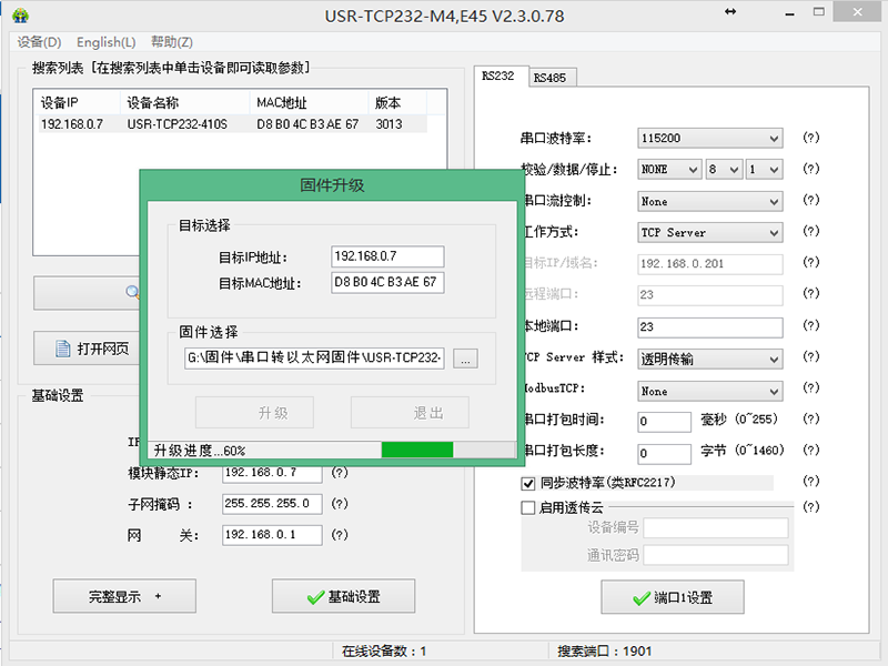 1、將M4系列的產品,加入路由器中,升級使用的電腦也加入同一個路由,使用配置軟件搜索M4。
