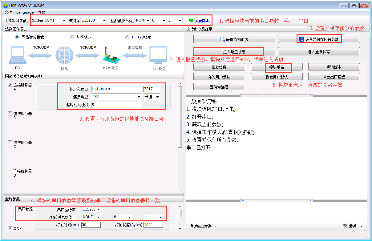 正常情況下,到這里,模塊就已經連上您設置好的服務器了。