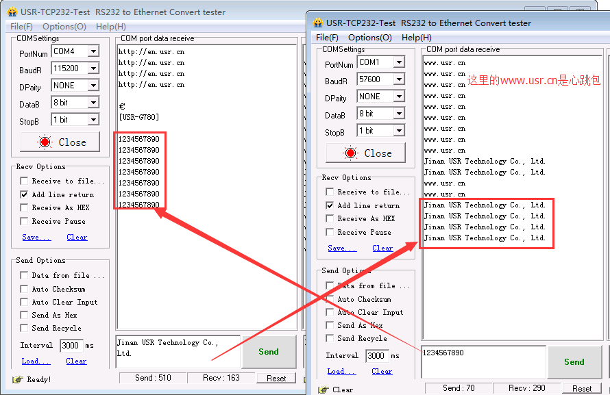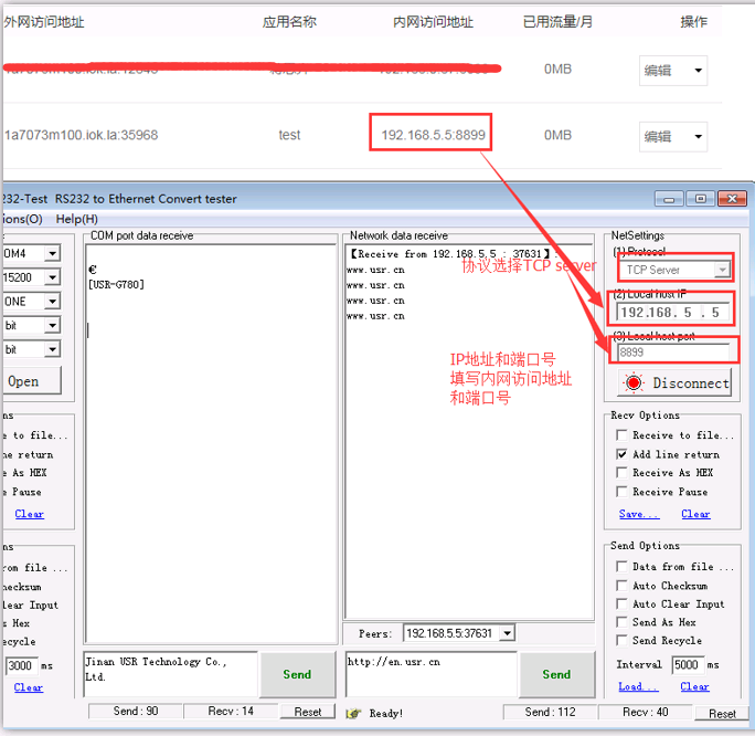 8.使用有人Test調試助手軟件測試GPRS DTU串口到網絡數據收發情況。