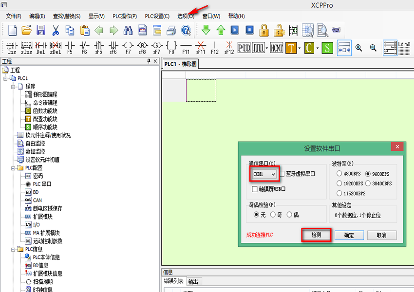 選擇對應(yīng)的虛擬COM口,進行檢測,會顯示成功連接PLC