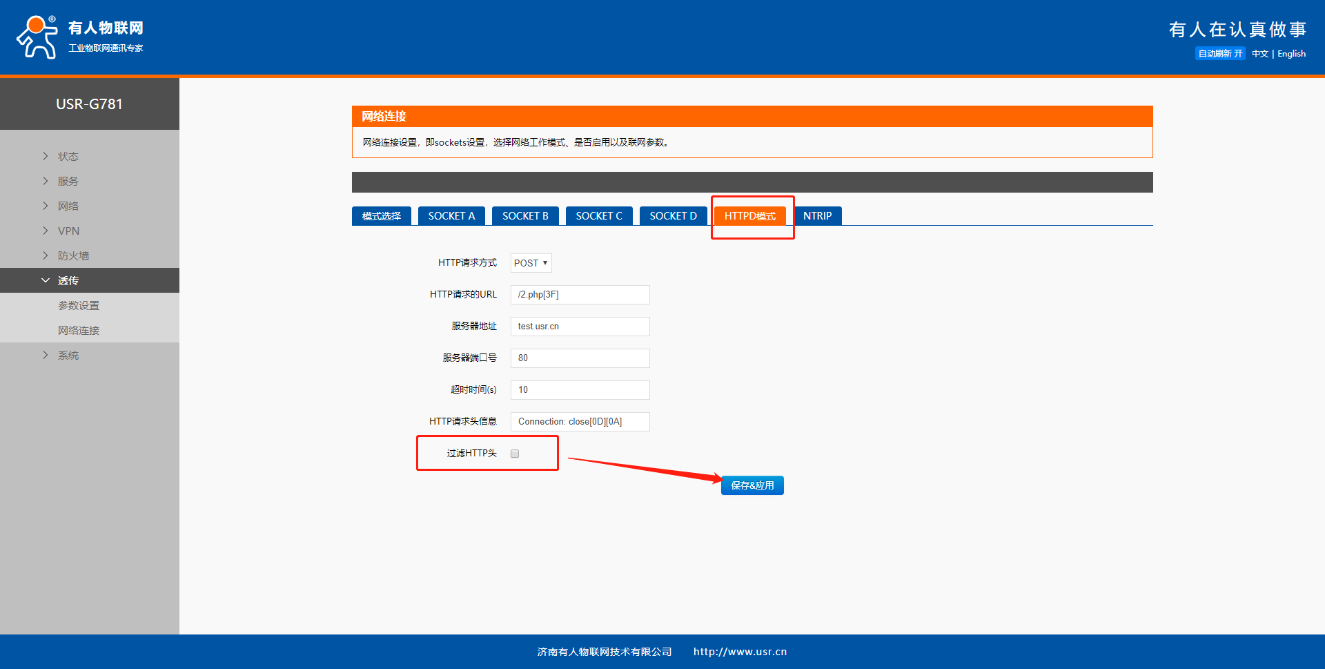 在內(nèi)置網(wǎng)頁--透傳--網(wǎng)絡(luò)連接--HTTPD模式中,過濾HTTP頭。
