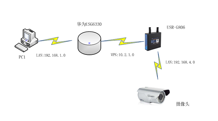 基于華為路由器搭建的VPN服務器,使用USR-G806撥VPN服務器,通過路由器下端的PC訪問G806LAN口設備。