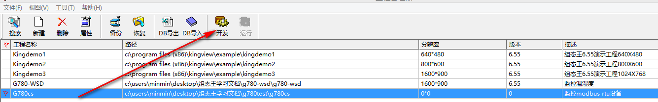4.2 將新建設(shè)置為當前工程,點擊“開發(fā)”