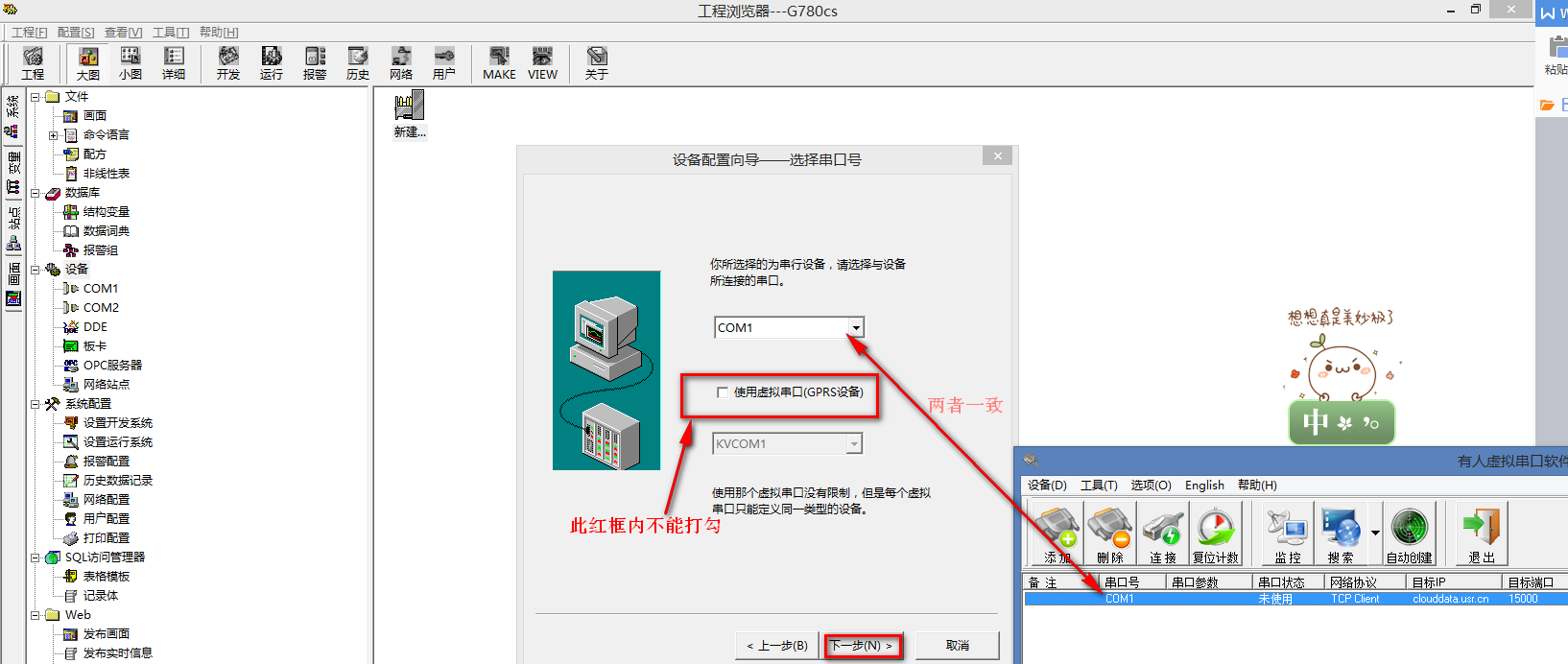 4.4 選擇COM口,此COM號與虛擬串口軟件上的COM號一致,點擊“下一步”