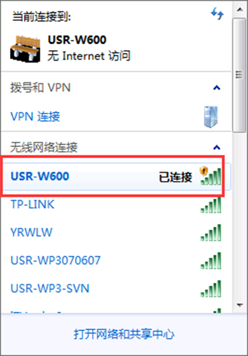 2> 模塊出廠默認是AP模式,電腦連接W600的Wi-Fi信號,有設備連到W600的Wi-Fi后,Link指示燈亮起。