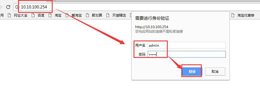 B. 用google或者IE瀏覽器打開(kāi)配置網(wǎng)頁(yè)10.10.100.254,用戶(hù)名和密碼均為admin