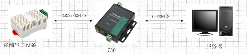 網絡拓撲結構: 終端串口設備發送數據--->730--->服務器
