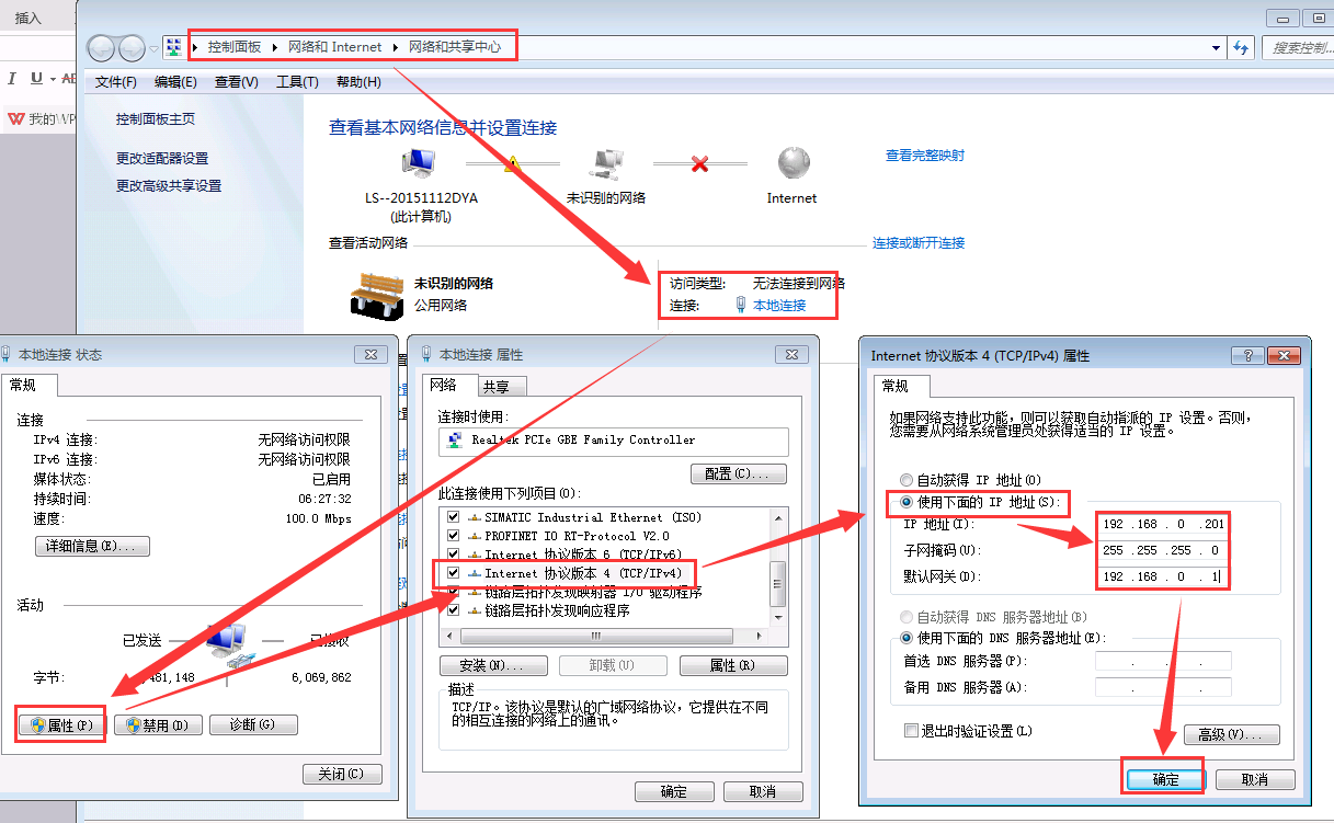 網絡和共享中心-->本地連接-->屬性-->TCP/IPv4-->使用固定IP