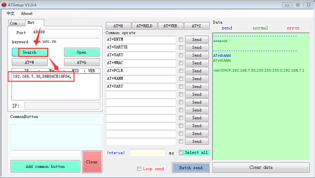 2>發送AT+WANN就可以查詢wifi模塊的WAN IP地址了;通過這個軟件也可以設置/查詢wifi模塊的其他參數,全面的AT指令見相關產品的軟件設計手冊。