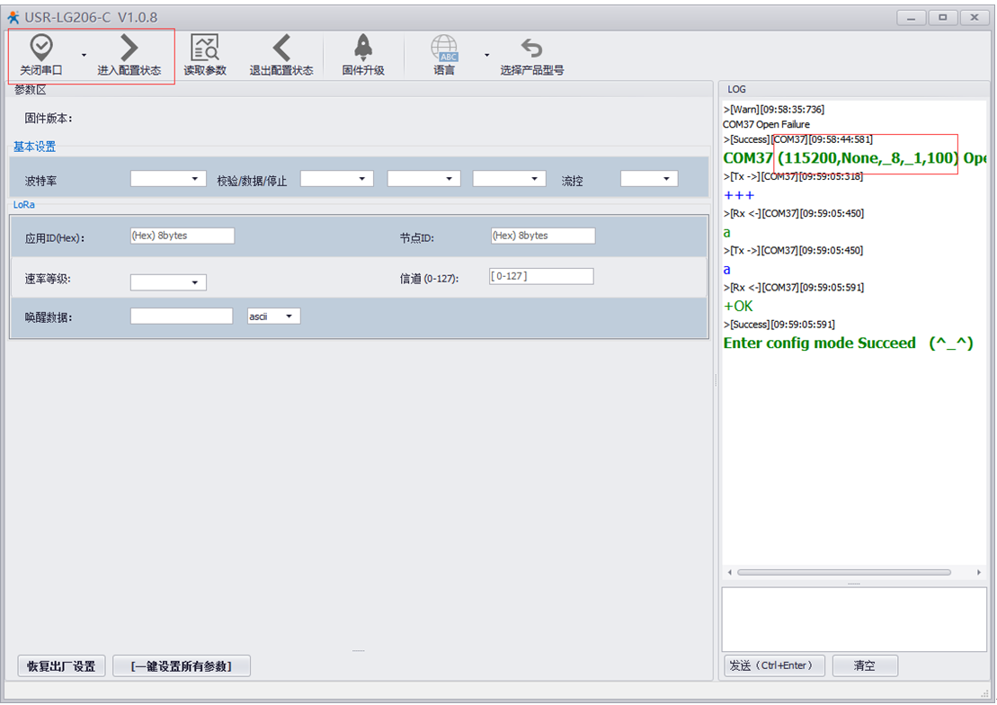 (1)進入配置狀態,讀取lora參數。設置軟件下載地址:http://www.0575400.com/Download/693.html