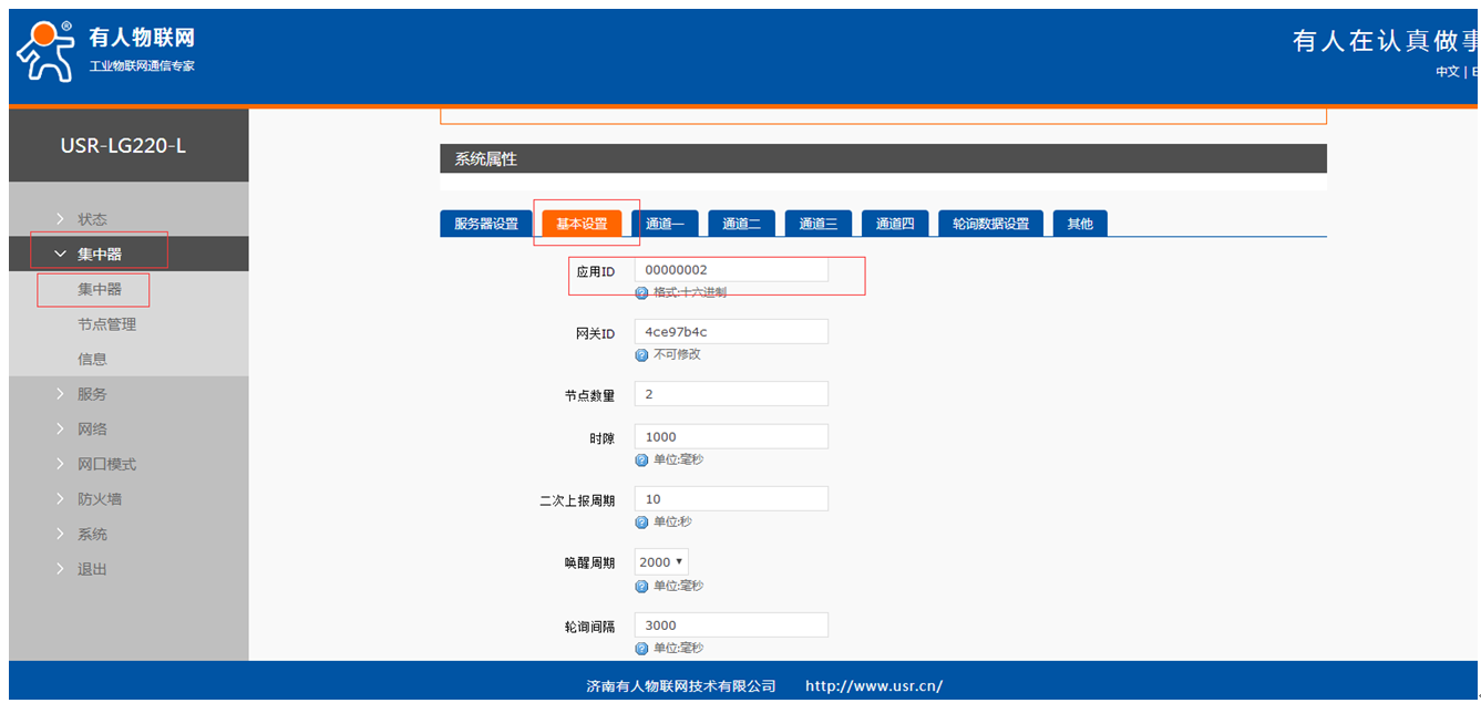 (3) 設置集中器的應用ID,依次點擊集中器,基本設置,應用ID,設置應用ID和lora相同。最后保存應用。