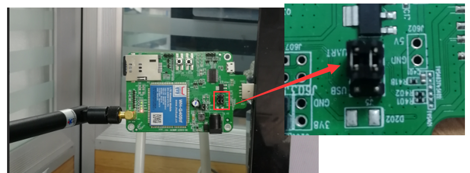 硬件連接方式2:這種連接方式下,需要注意下圖紅框內的跳線帽需要接到UART端