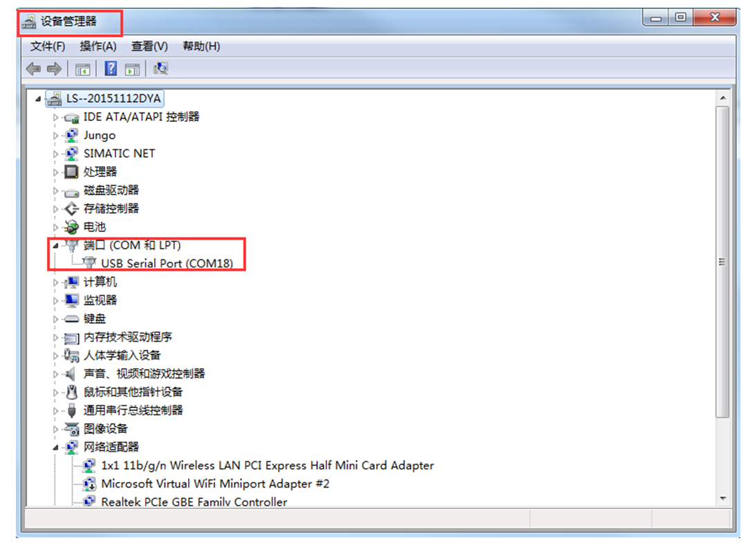 其中串口號可以在電腦的“設備管理器”中查看,見下圖;