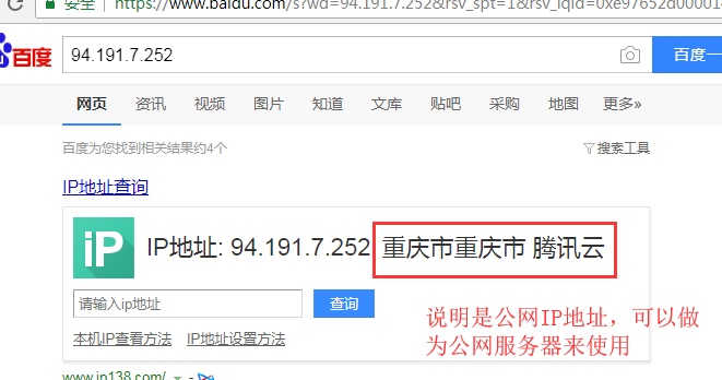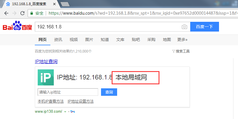 1. 首先確定服務器地址是否是公網IP地址,例:服務器地址是192.168.1.8,將該IP地址復制到百度搜索,如果百度提示是本地局域網的話,那么這個地址是無法用我司的DTU或者2.3.4G類的模塊來連接的;如果是公網IP地址,那么這個IP是可以被連接的