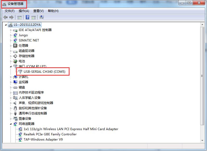 其中串口號可以在電腦的“設備管理器”中查看,見下圖;