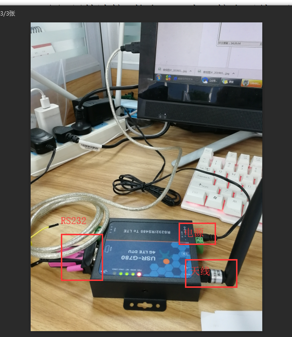 (1) 硬件連接:裝上sim卡,接上天線,780 V2的串口通過UAB轉RS232/485接到PC上,用我司提供的適配器供電。