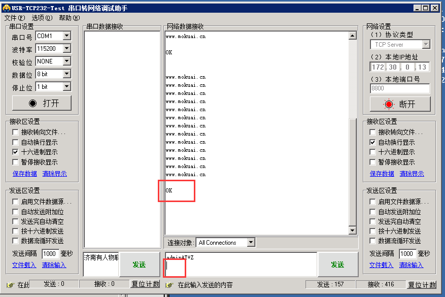 注意:修改的參數都需要重啟后才能生效,所以最后發送adminAT+Z重啟DTU