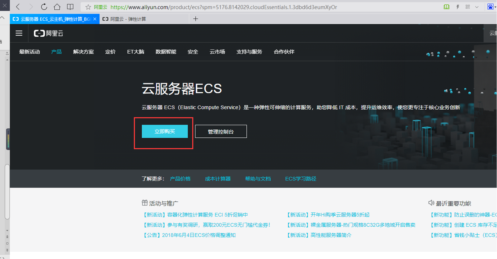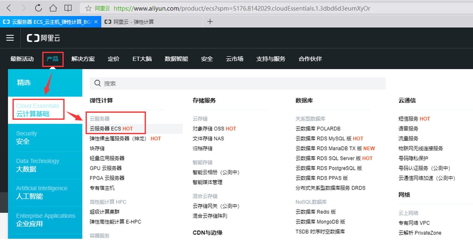 云服務器ECS:云服務器(Elastic Compute Service, ECS)是一種簡單高效、安全可靠、處理能力可彈性伸縮的計算服務。其管理方式比物理服務器更簡單高效。用戶無需提前購買硬件,即可迅速創建或釋放任意多臺云服務器。