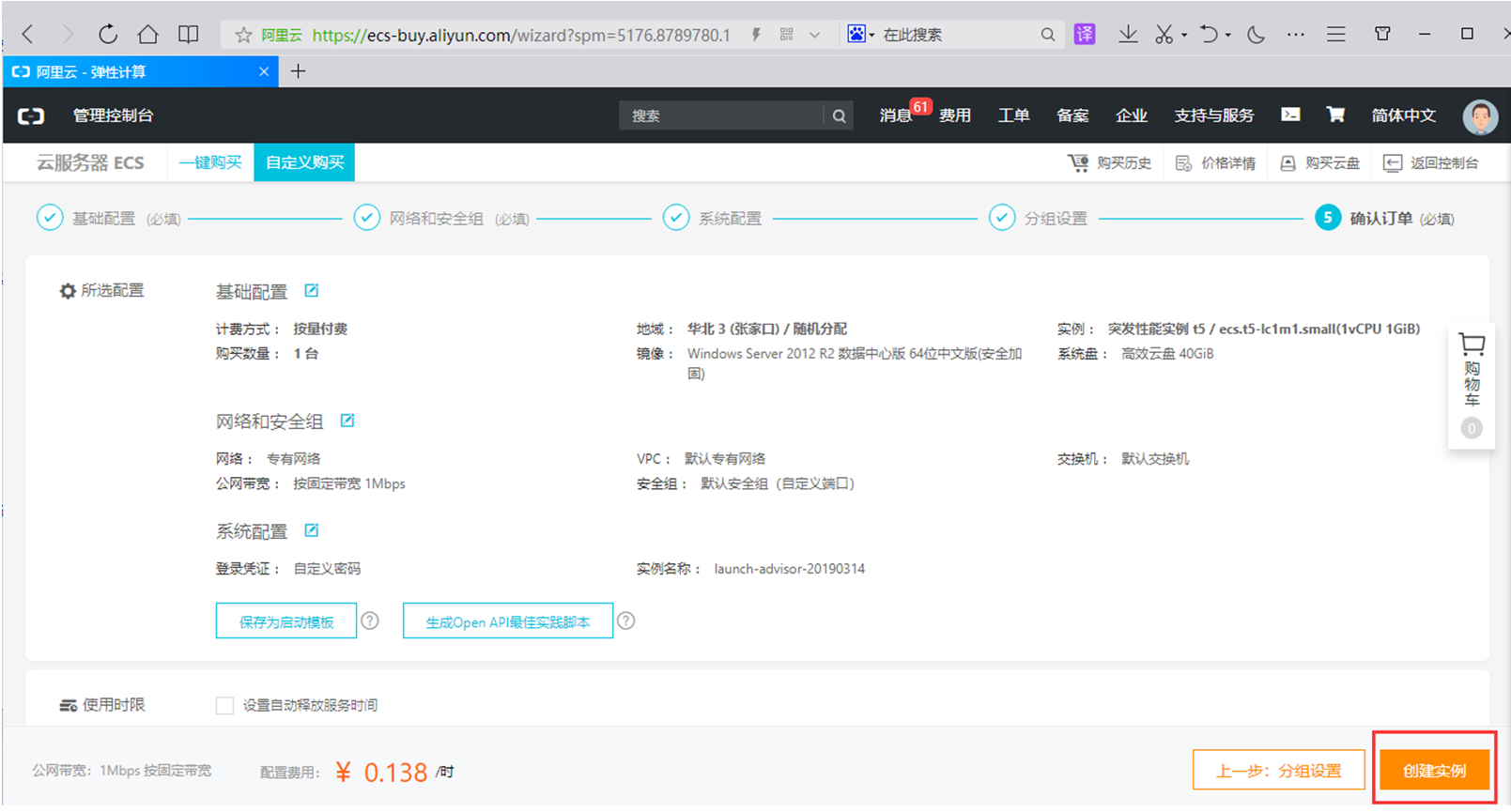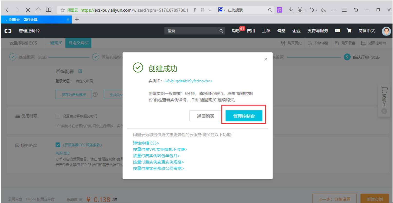 (2) 公網帶寬:分配公網IPv4地址 按固定帶寬(1M)