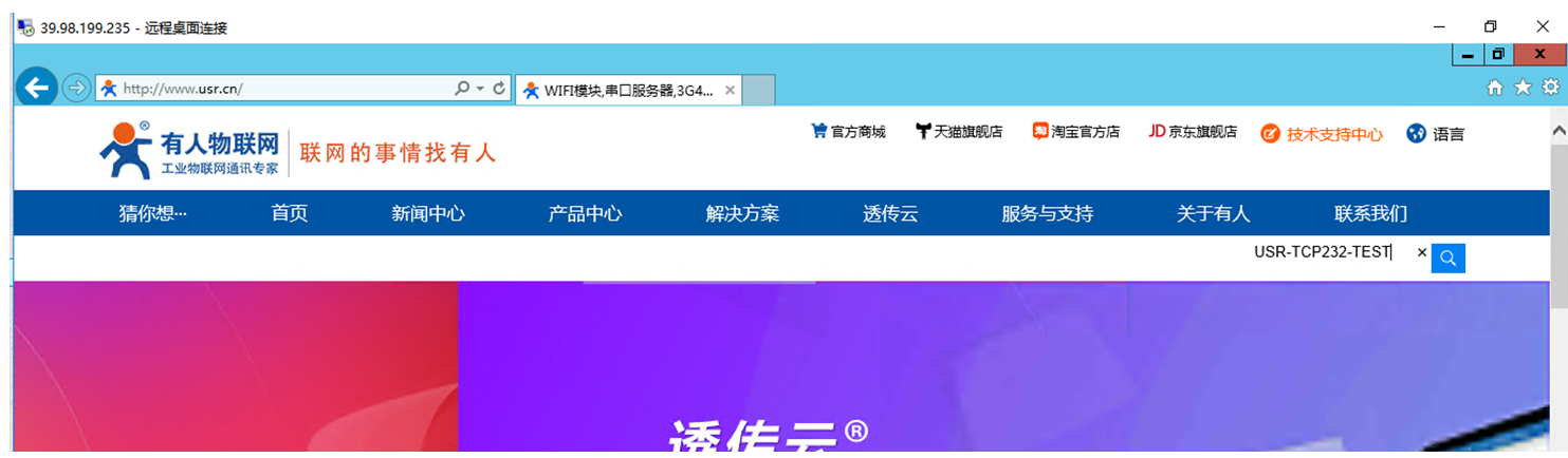 5. 點擊瀏覽器,進入有人官網www.0575400.com,下載USR-TCP232-TEST調試助手http://www.0575400.com/Download/27.html。