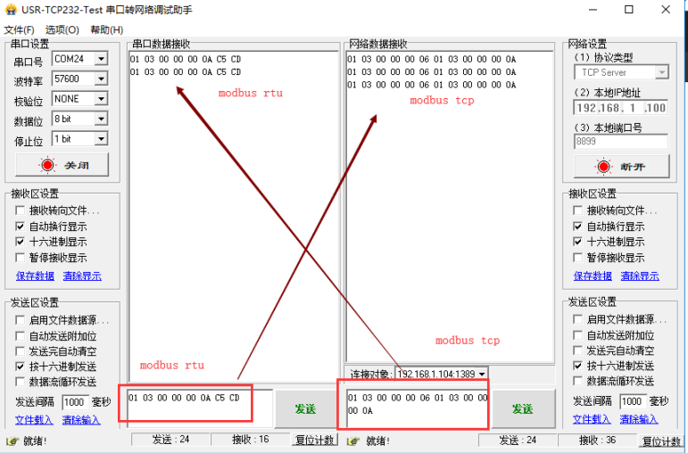 打開串口調(diào)試助手就行模擬,串口用usb轉(zhuǎn)485,或者是usb轉(zhuǎn)232接到電腦上,打開物理串口,右邊設(shè)置服務(wù)器的ip和端口(如果都是電腦做服務(wù)器,就是電腦的ip和端口)