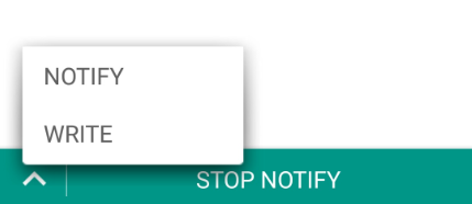 我們點(diǎn)擊第一個(gè)Service進(jìn)去,然后選擇最下面DEBUG選項(xiàng)點(diǎn)擊進(jìn)入,我們首先點(diǎn)擊下面的NOTIFY,點(diǎn)擊之后變?yōu)?/span>STOP NOTIFY,說(shuō)明進(jìn)入監(jiān)聽(tīng)狀態(tài),此時(shí)我們可以通過(guò)串口接收數(shù)據(jù),要想發(fā)送數(shù)據(jù),點(diǎn)擊左面的向上的符號(hào),里面有WRITE一項(xiàng),我們可以點(diǎn)開(kāi)后輸入發(fā)送的數(shù)據(jù),點(diǎn)擊SEND后,串口那邊將會(huì)收到你發(fā)送的數(shù)據(jù)。