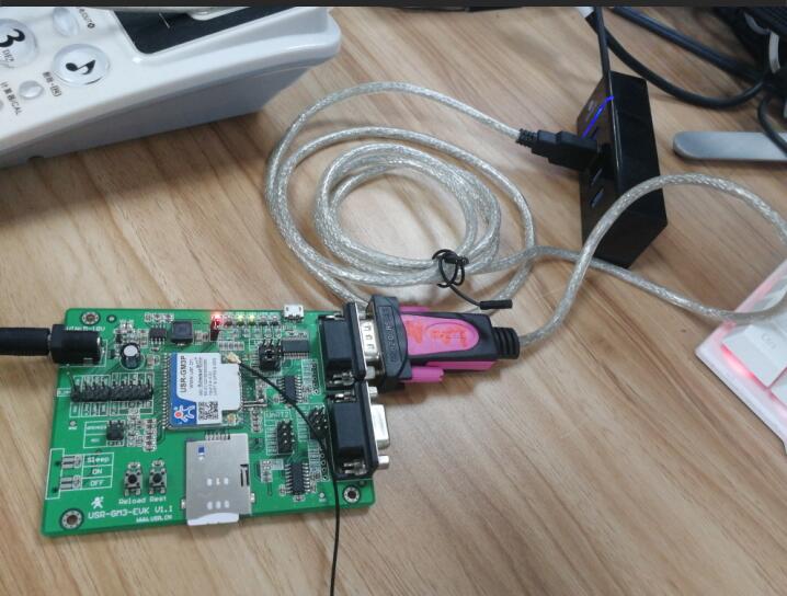 1. 將模塊通過串口連接到PC上,GM3系列的以GM3P+EVK來示例。裝上gprs天線,裝上支持短信的移動sim卡,上電。