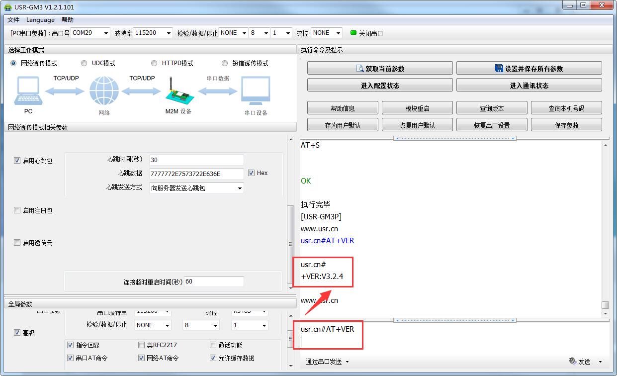 等待模塊重啟后,我們再發送剛才的查詢版本的指令,可以看到GM3P有回復固件版本號