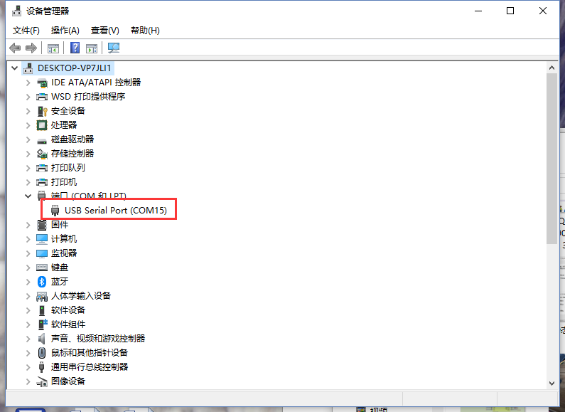 其中串口號可以在電腦的“設備管理器”中查看,見下圖;