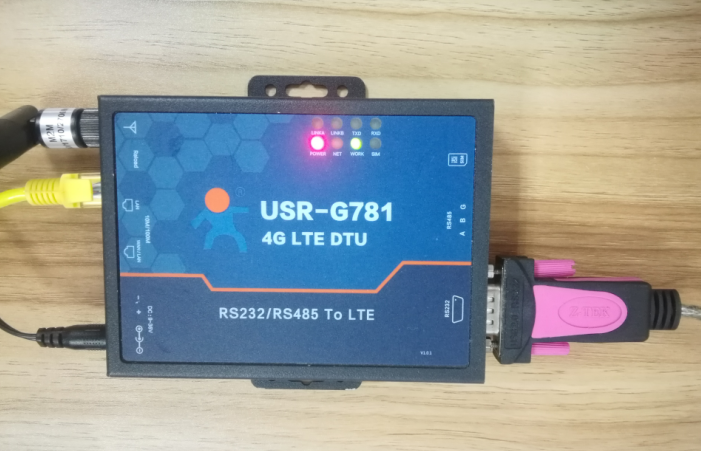 (1) 硬件連接: G781的串口通過USB轉(zhuǎn)RS232/485接到PC上,LAN口通過網(wǎng)線鏈接到電腦的網(wǎng)口上,用我司提供的適配器供電。