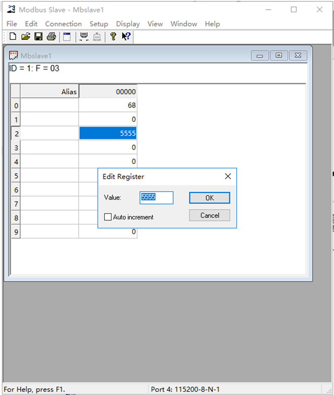 (9)從中軟件修改數(shù)據(jù),雙擊數(shù)據(jù),在value框中將要修改的數(shù)據(jù)寫入,點(diǎn)擊ok即可進(jìn)行修改。(slave和poll軟件中均可進(jìn)行修改)