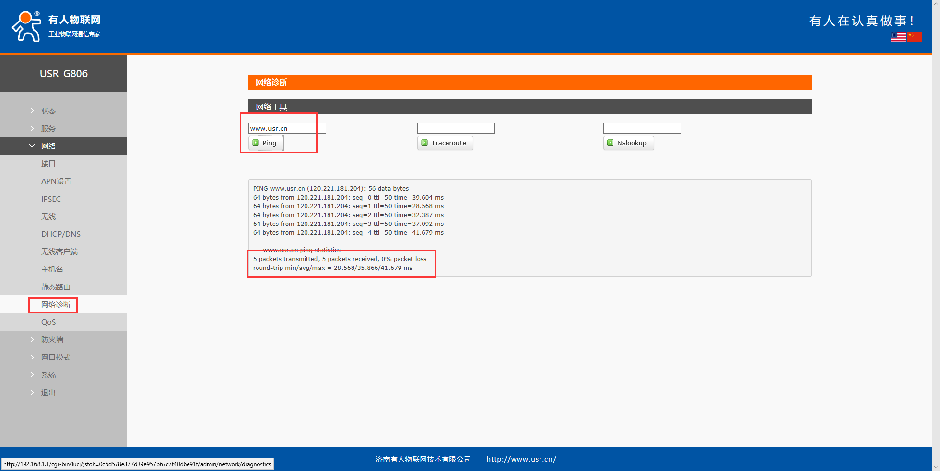 打開網絡------網絡診斷界面,ping網檢測一下,如下所示,網絡正常
