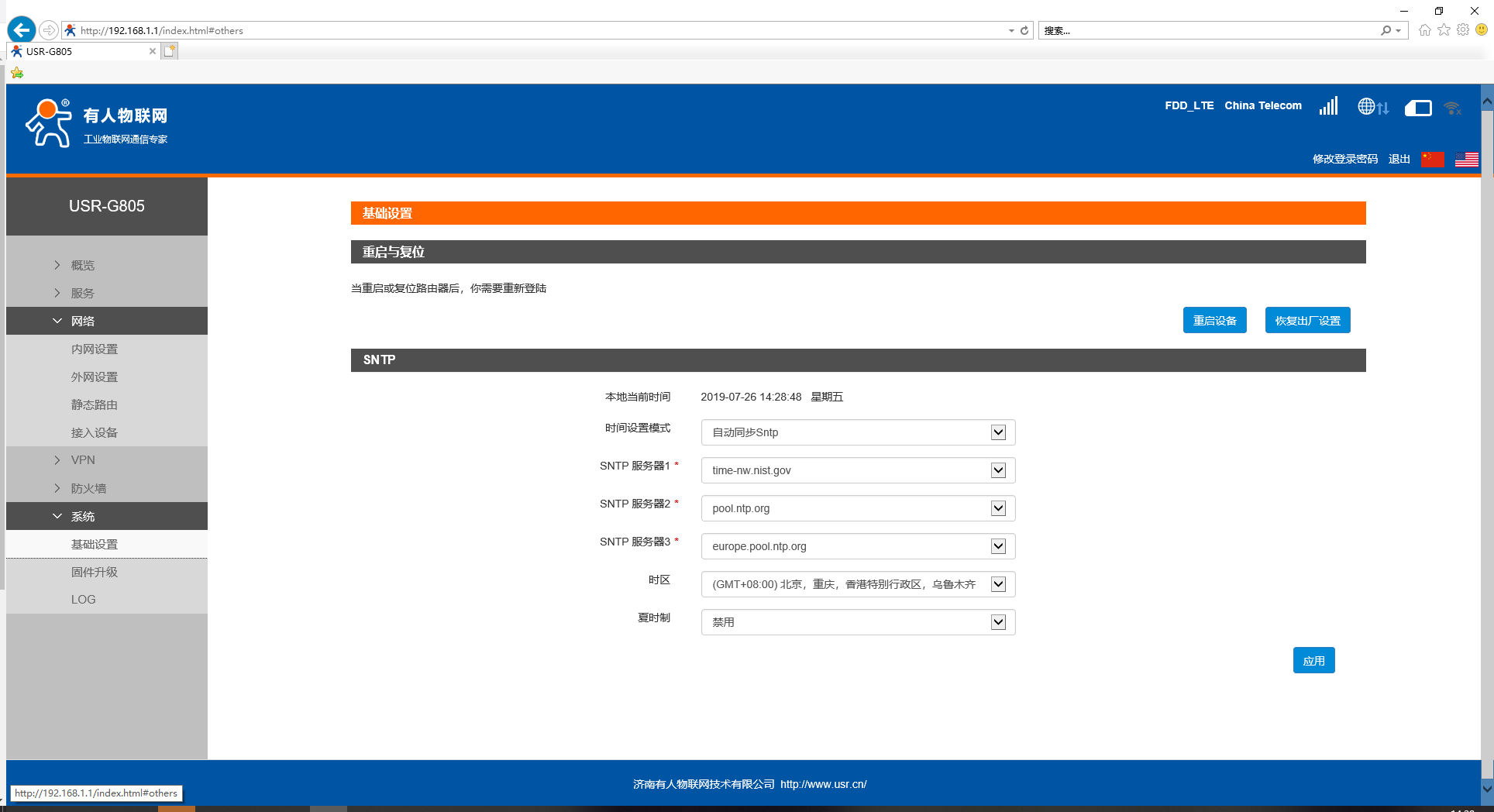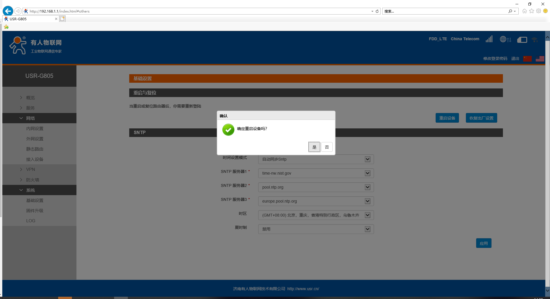 4、切換到系統---基礎設置界面,點擊“重啟設備”。