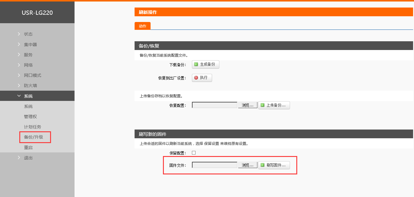 點擊系統,選擇備份/升級,選擇固件文件,確定后點擊刷寫固件。