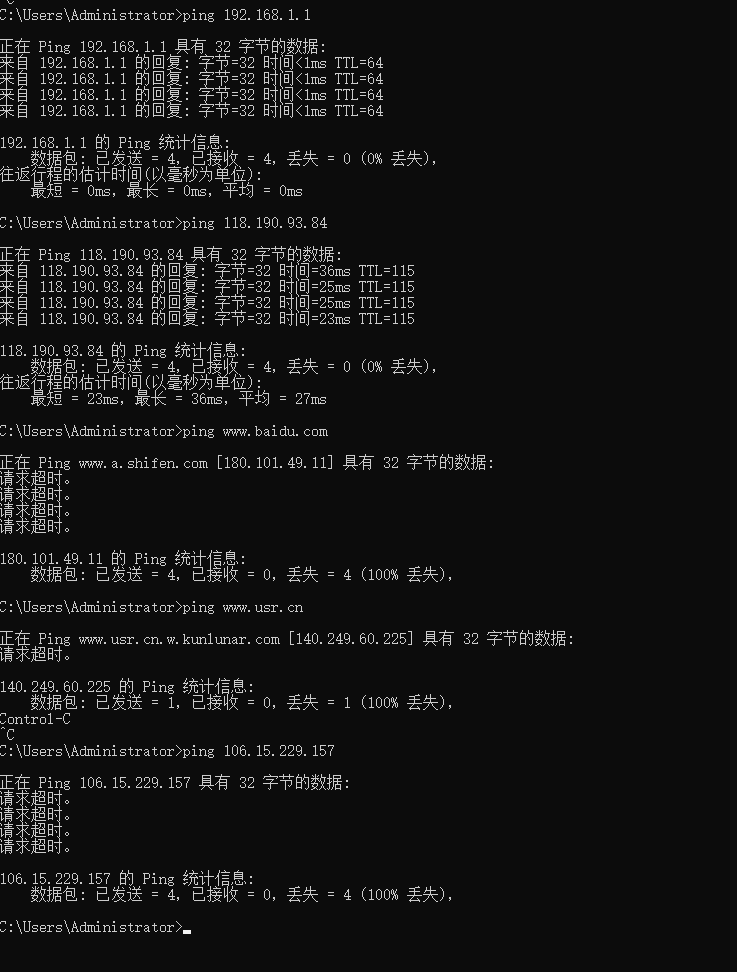 除了規則允許的192.168.1.1和118.190.93.84以外,無法ping通