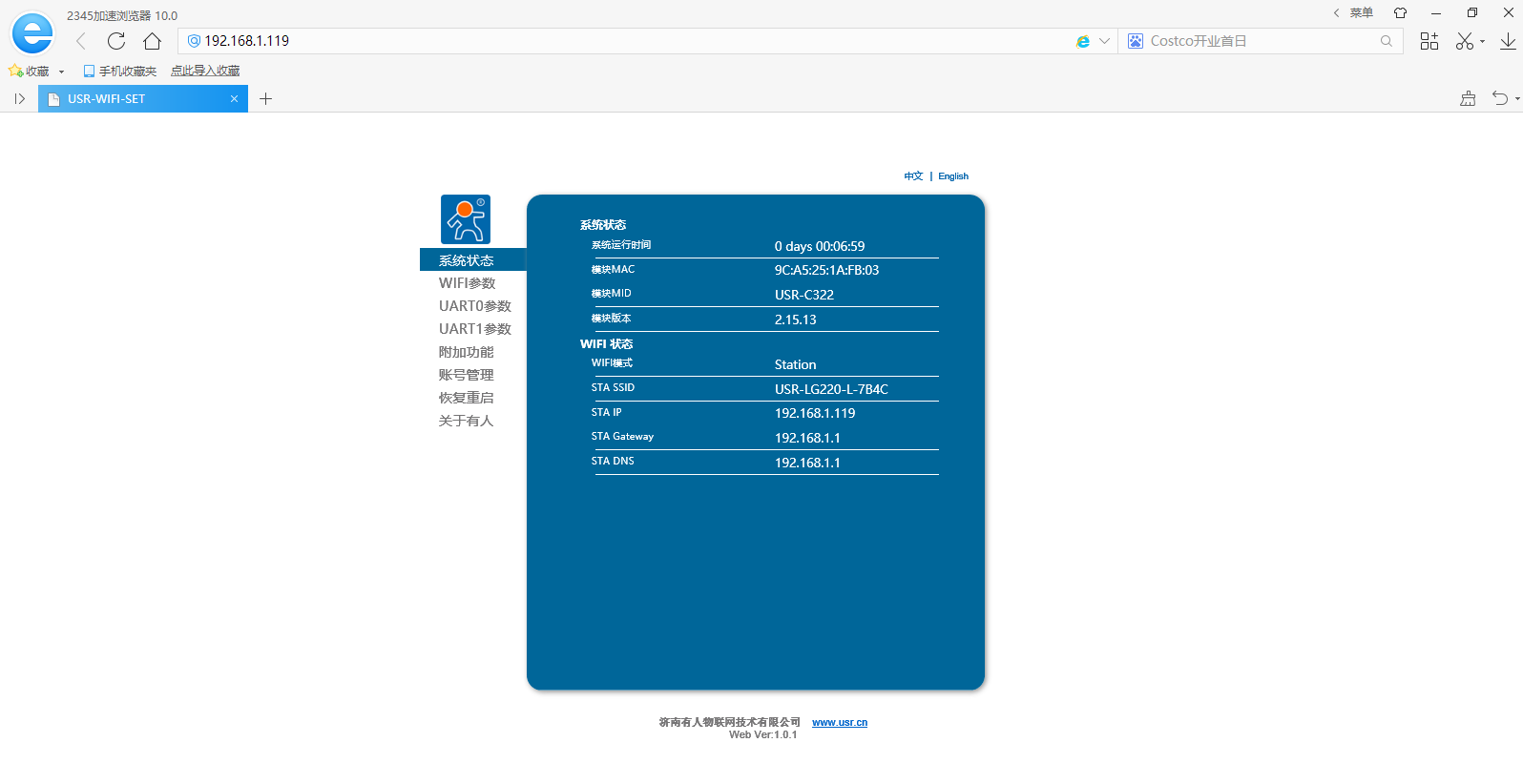 4) 點擊“打開”,便可快速登入模塊的內置網頁進行配置參數。