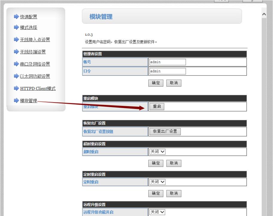 1、首先電腦連接此設備的WiFi,在瀏覽器上輸入WIFI模塊默認的IP地址10.10.100.254進入配置界面,(賬號和密碼都是admin);