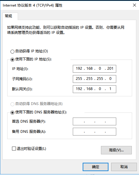 1. 打開電腦,鏈接設備的網卡(未識別網絡是正常的狀態),將改網卡的IP地址設置為靜態的IP地址192.168.0.201