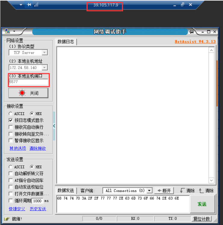 登錄遠(yuǎn)程服務(wù)器平臺打開一個網(wǎng)絡(luò)調(diào)試助手,開啟一個端口