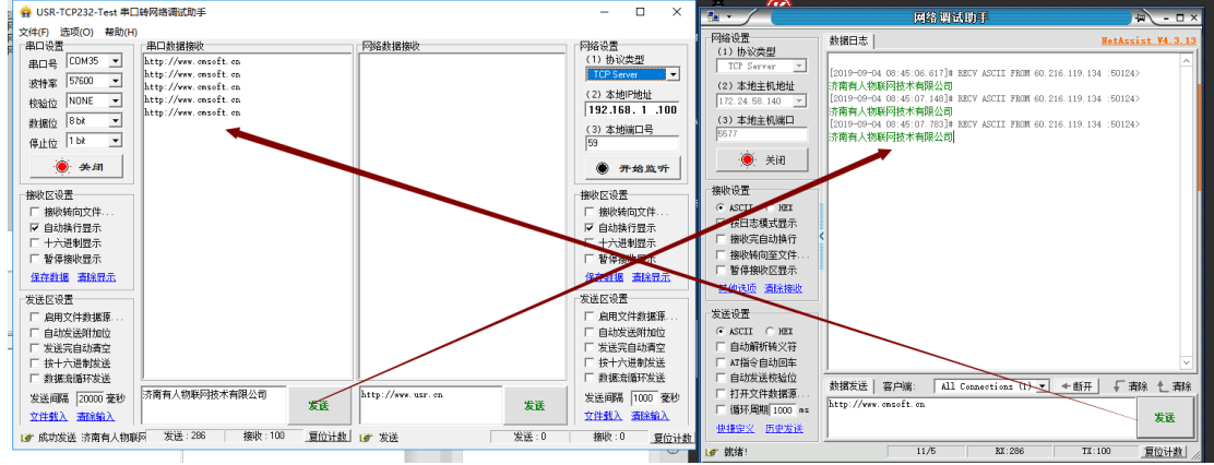 9用串口調(diào)試助手打開串口,讓其和遠(yuǎn)程服務(wù)器通訊