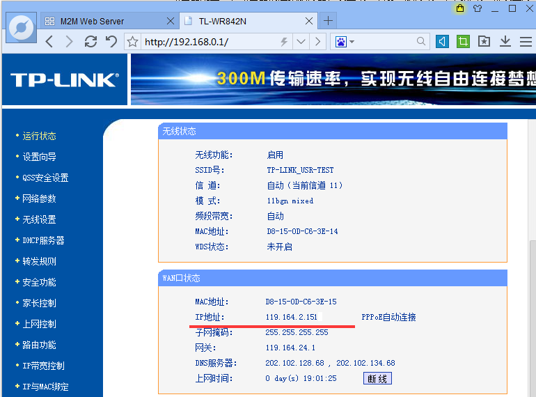 查看路由器的公網IP:WAN狀態的IP地址。(WAN口地址必須是公網IP,用戶可以在百度IP上查詢一下,是不是公網IP)
