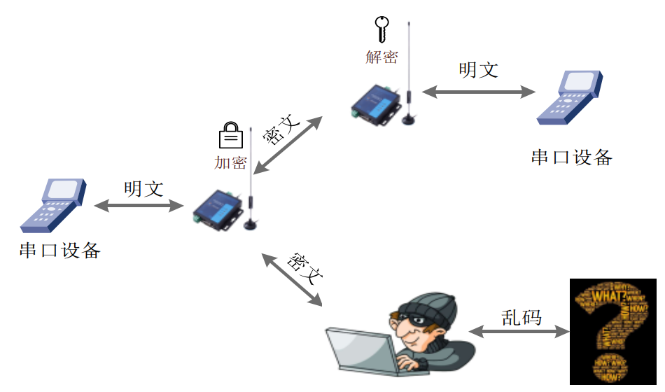 在數據傳輸環節對數據進行加密,使數據傳輸更加安全。加密字可通過 AT+KEY 進行設置,通信的產品都需要設置相同的加密字,為保障數據安全,此加密字只可設置不可查詢。