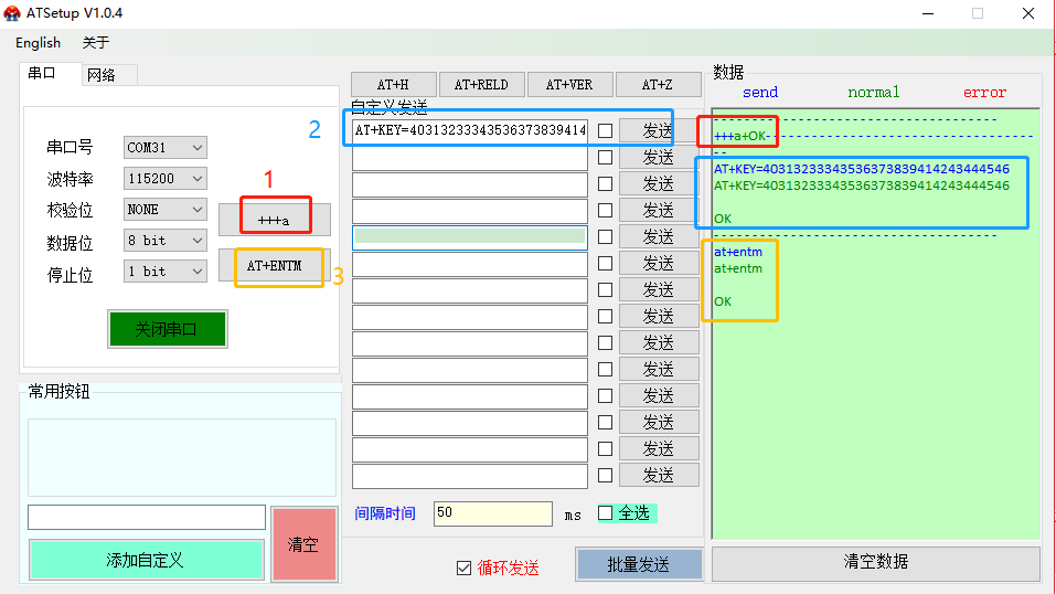 5.完成at指令配置后 ,串口設備給模塊發送指令“AT+ENTM”。