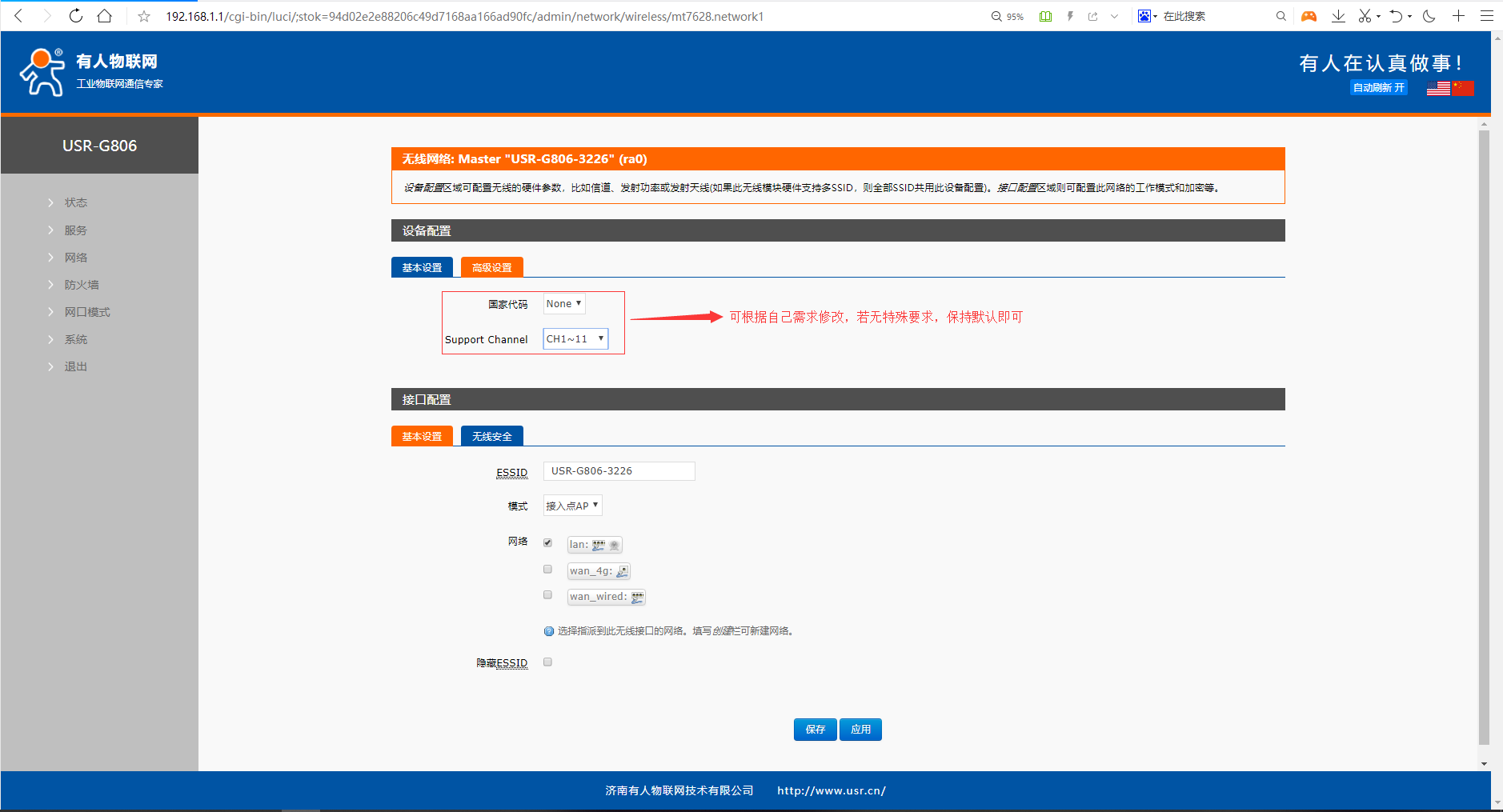 以上所有選項修改后,點擊頁面下的保存應用,參數應用后即可生效