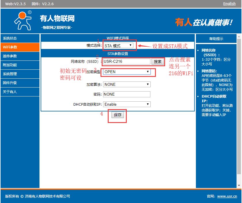 2、連另一個216的WIFI,設為STA模式,連剛剛設為AP模式的WIFI