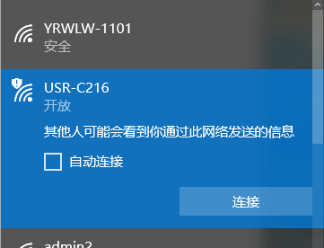 在電腦無(wú)線搜索欄,搜索到USR-216,連接