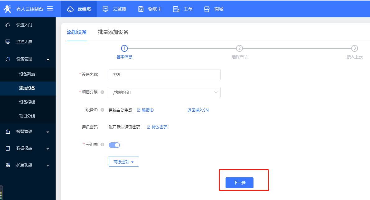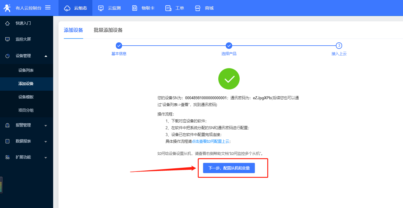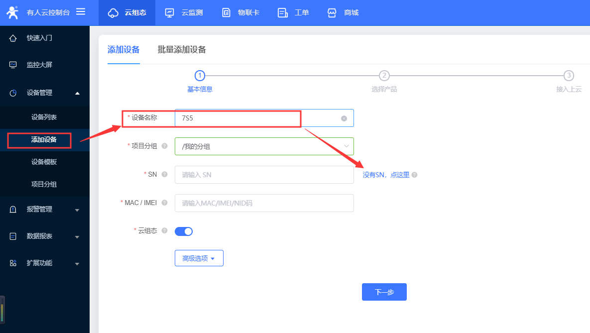 有人云以設備ID方式添加,ID是系統自動生成的;點擊沒有SN,點這里