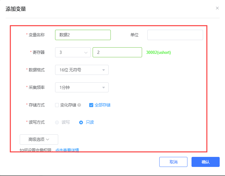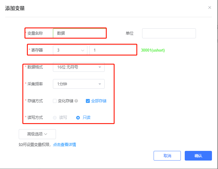 以這個為例,操作為只讀就是功能碼為03則就是4,寄存器地址16進制轉換為10進制就是0000,然后+1;所以組態地址就是40001