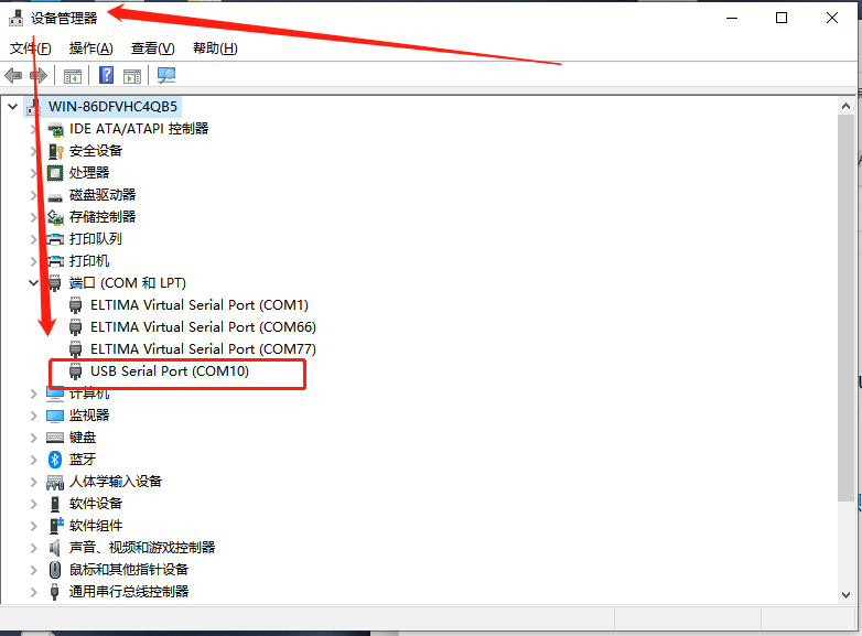2、串口號查看方式:右擊此電腦-->屬性-->設備管理器(如果查看不到,安裝驅動精靈或者更新驅動)